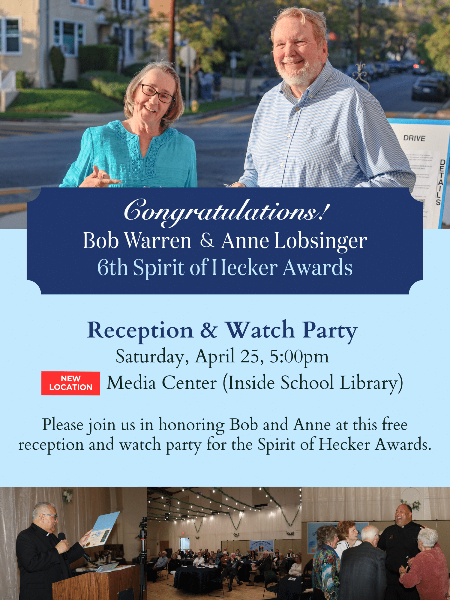 Please join us in honoring Bob Warren and Anne Lobsinger at this free reception and watch party for the Spirit of Hecker Awards!